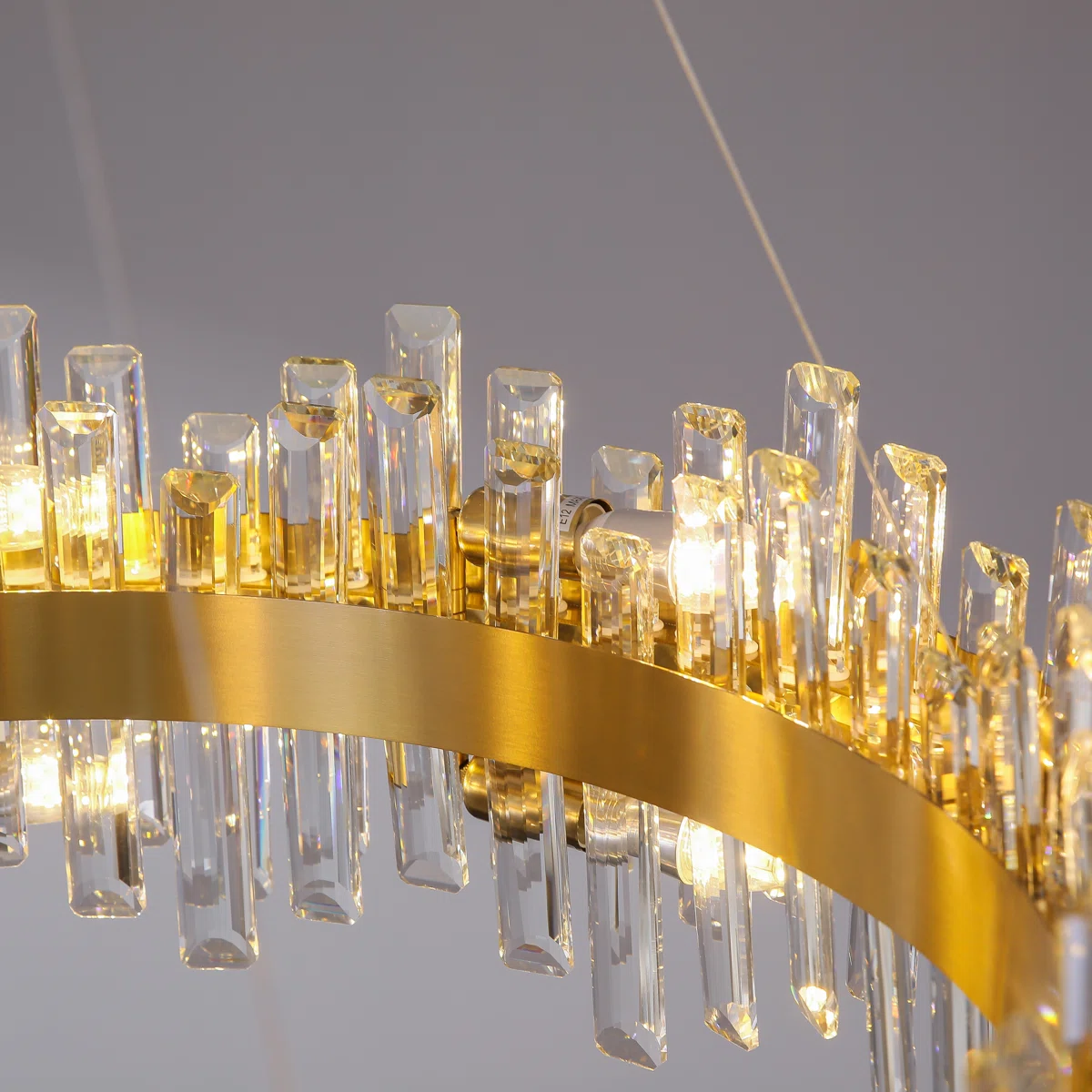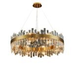 The chandelier features meticulously cut K9 crystals that refract light beautifully, creating a sparkling, radiant ambiance that enhances the atmosphere of your dining room or living area. Each crystal strip is precision-cut to maximize light reflection, ensuring a luxurious glow that brightens the room while adding sophistication to your décor. Its circular design complements both modern and transitional interiors, making it versatile enough to suit a variety of home styles.